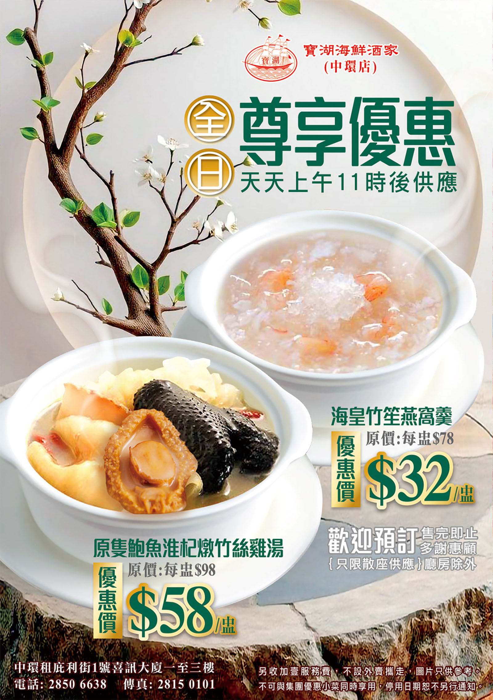 2026 03月 全日尊享優惠 ( 海皇竹笙燕窩羹+原隻鮑魚淮杞燉竹絲雞湯 )